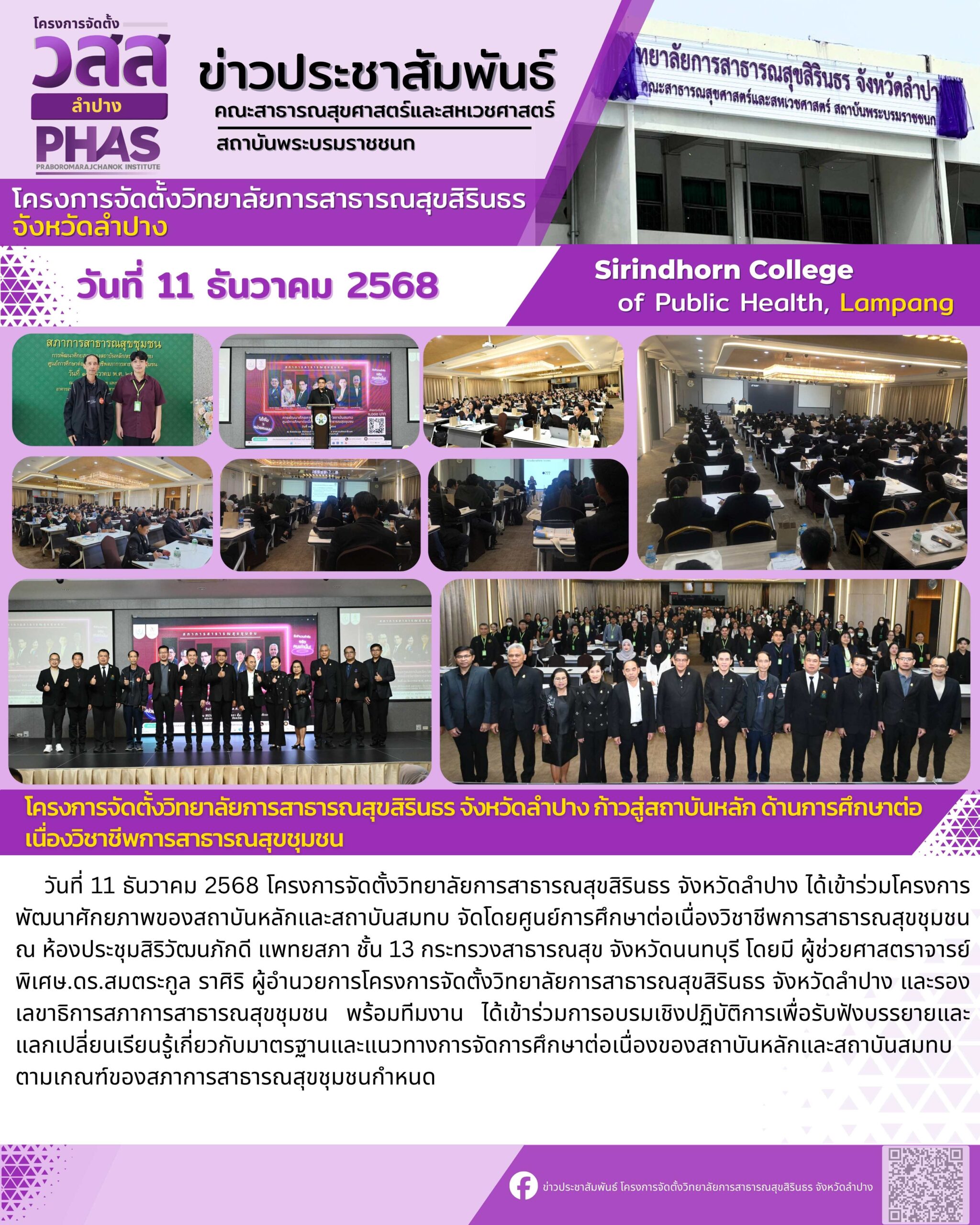 โครงการจัดตั้งวิทยาลัยการสาธารณสุขสิรินธร จังหวัดลำปาง ก้าวสู่สถาบันหลัก ด้านการศึกษาต่อเนื่องวิชาชีพการสาธารณสุขชุมชน
