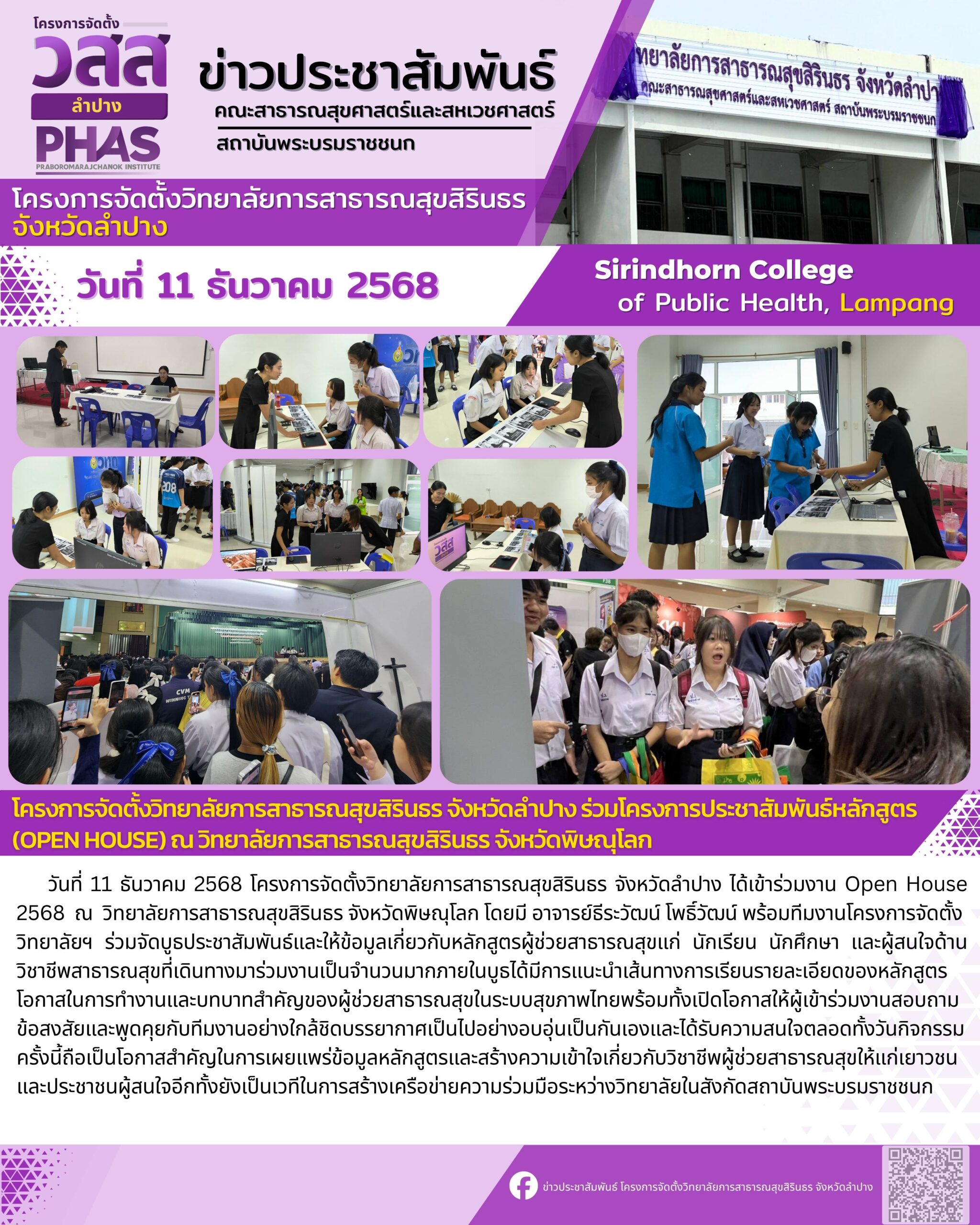 โครงการจัดตั้งวิทยาลัยการสาธารณสุขสิรินธร จังหวัดลำปาง ร่วมโครงการประชาสัมพันธ์หลักสูตร (OPEN HOUSE) ณ วิทยาลัยการสาธารณสุขสิรินธร จังหวัดพิษณุโลก