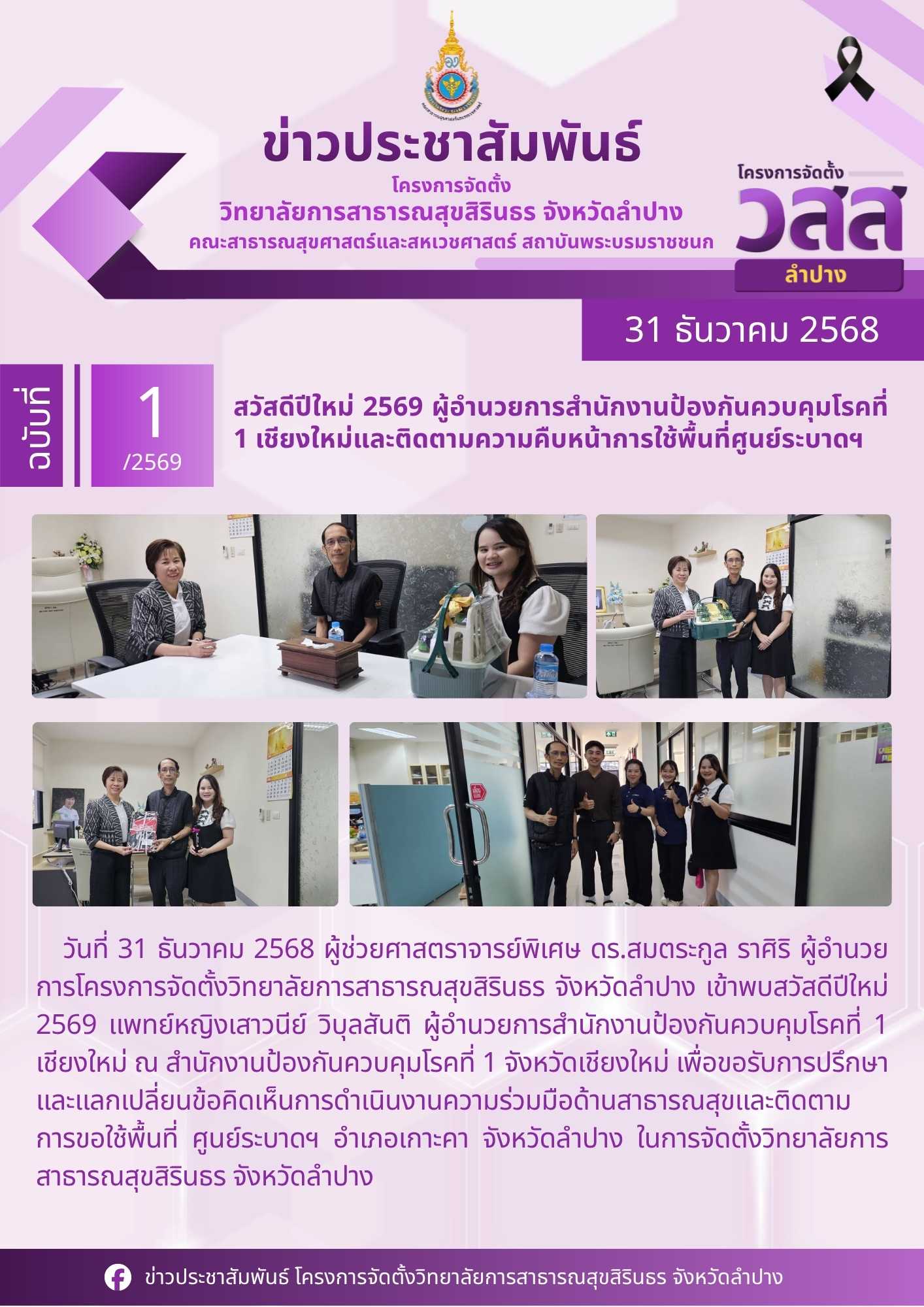 สวัสดีปีใหม่ 2569 ผู้อำนวยการสำนักงานป้องกันควบคุมโรคที่ 1 เชียงใหม่และติดตามความคืบหน้าการใช้พื้นที่ศูนย์ระบาดฯ