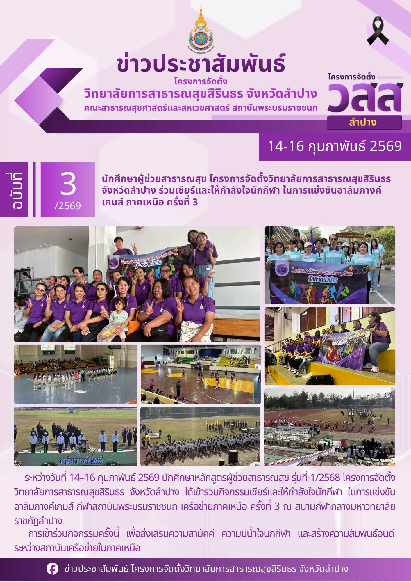 นักศึกษาผู้ช่วยสาธารณสุข โครงการจัดตั้งวิทยาลัยการสาธารณสุขสิรินธร จังหวัดลำปาง ร่วมเชียร์และให้กำลังใจนักกีฬา ในการแข่งขันอาลัมภางค์เกมส์ ภาคเหนือ ครั้งที่ 3