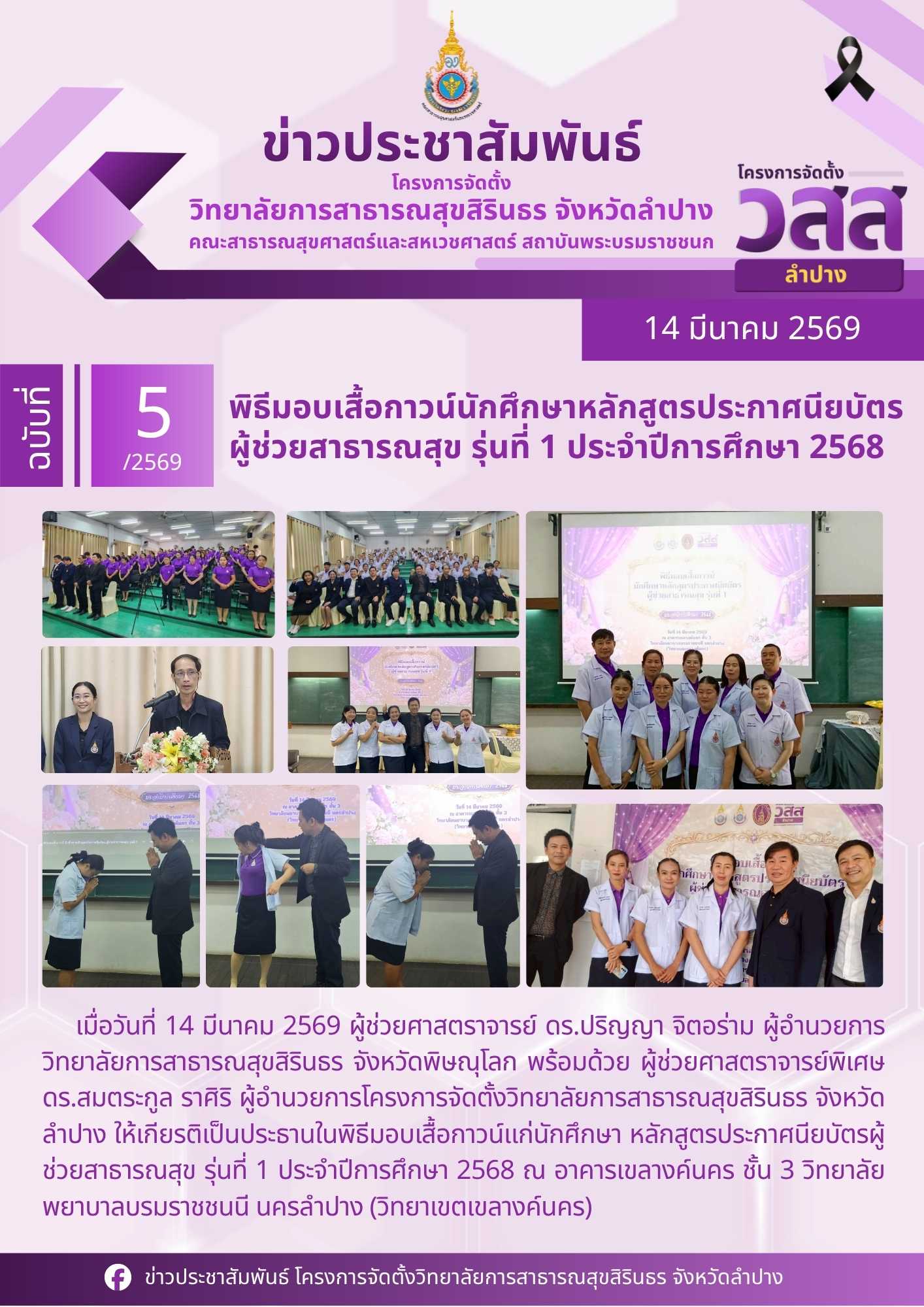 พิธีมอบเสื้อกาวน์นักศึกษาหลักสูตรประกาศนียบัตรผู้ช่วยสาธารณสุข รุ่นที่ 1 ประจำปีการศึกษา 2568