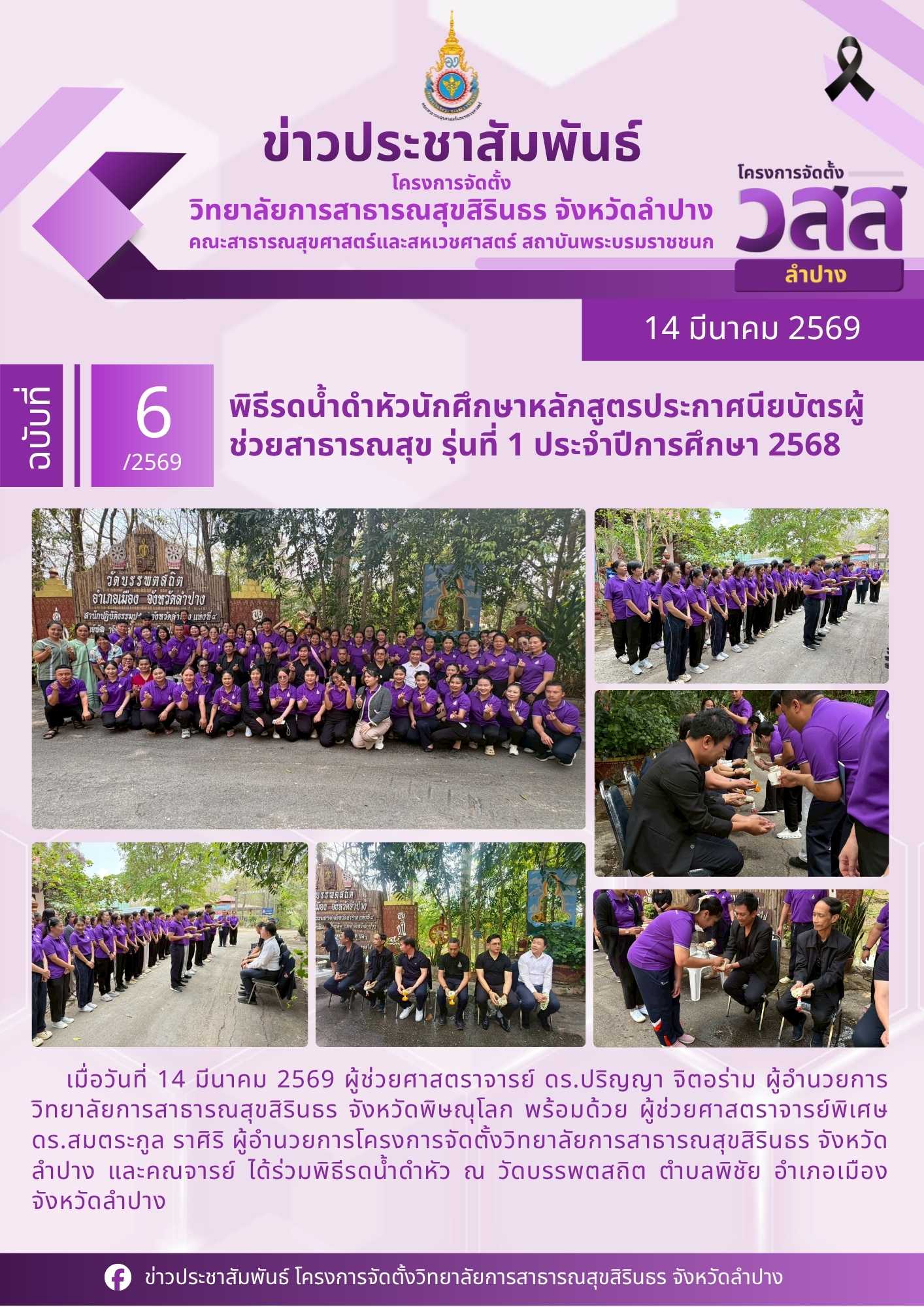 พิธีรดน้ำดำหัวนักศึกษาหลักสูตรประกาศนียบัตรผู้ช่วยสาธารณสุข รุ่นที่ 1 ประจำปีการศึกษา 2568